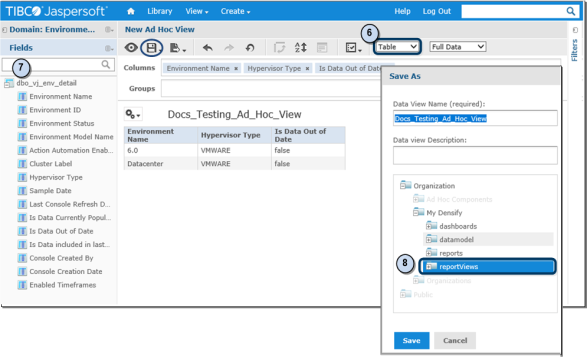 - Click the Save icon to save the ad hoc view into the "/Organization/My Densify/reportViews" folder.