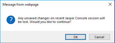 A message prompting you to save your changes in the JasperReports Server console, as your changes will be lost once you log into Densify. If you have saved your view and dashboard, it is safe to click OK and continue to the Densify Console.