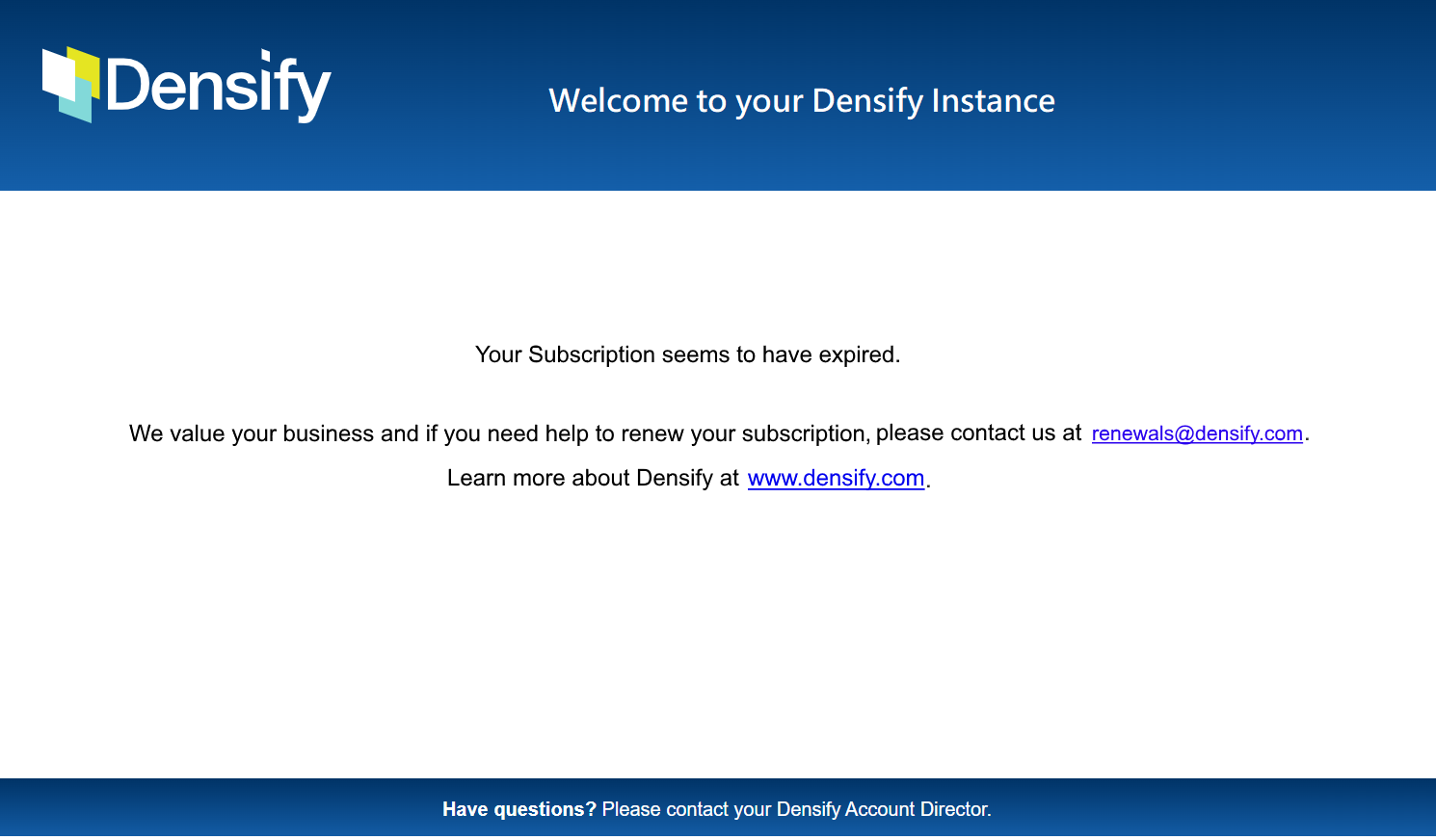 Contact your account manager for renewal or upgrade options.