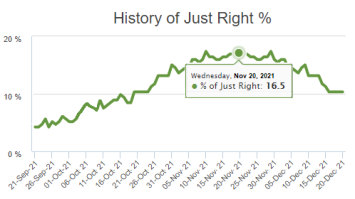 The line chart at the bottom, of this section shows the number of container manifests that are sized correctly over time. The axis scales based on the amount of data up to the maximum of 6 months. If you hover over any data point in the graph a popup indicates the percentage of systems that are "Just Right" and the date. As you apply the recommendations, the number of right-sized container manifests should increase over time.