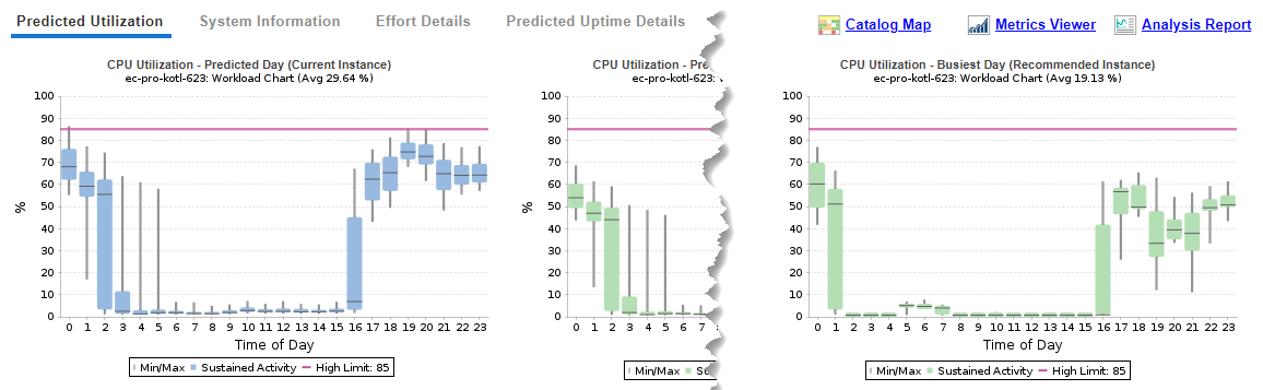 • Catalog Map—This link opens the Analysis Details page showing the chart displaying the available recommendation options for the selected instance. See Using the Catalog Map for details.