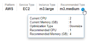 on the Recommended Type displays the details of the recommended instance type.