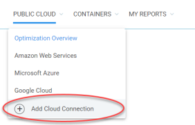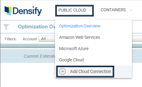 from the Densify Console, navigate to Public Cloud > Add Cloud Connection.