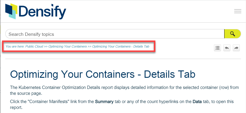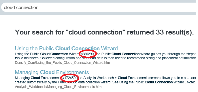 For example, Densify Support may direct you to a topic that answers your specific question. The Topic ID is unique, so there will be only one topic that corresponds to a given ID, making the topic easy to find using Search.
