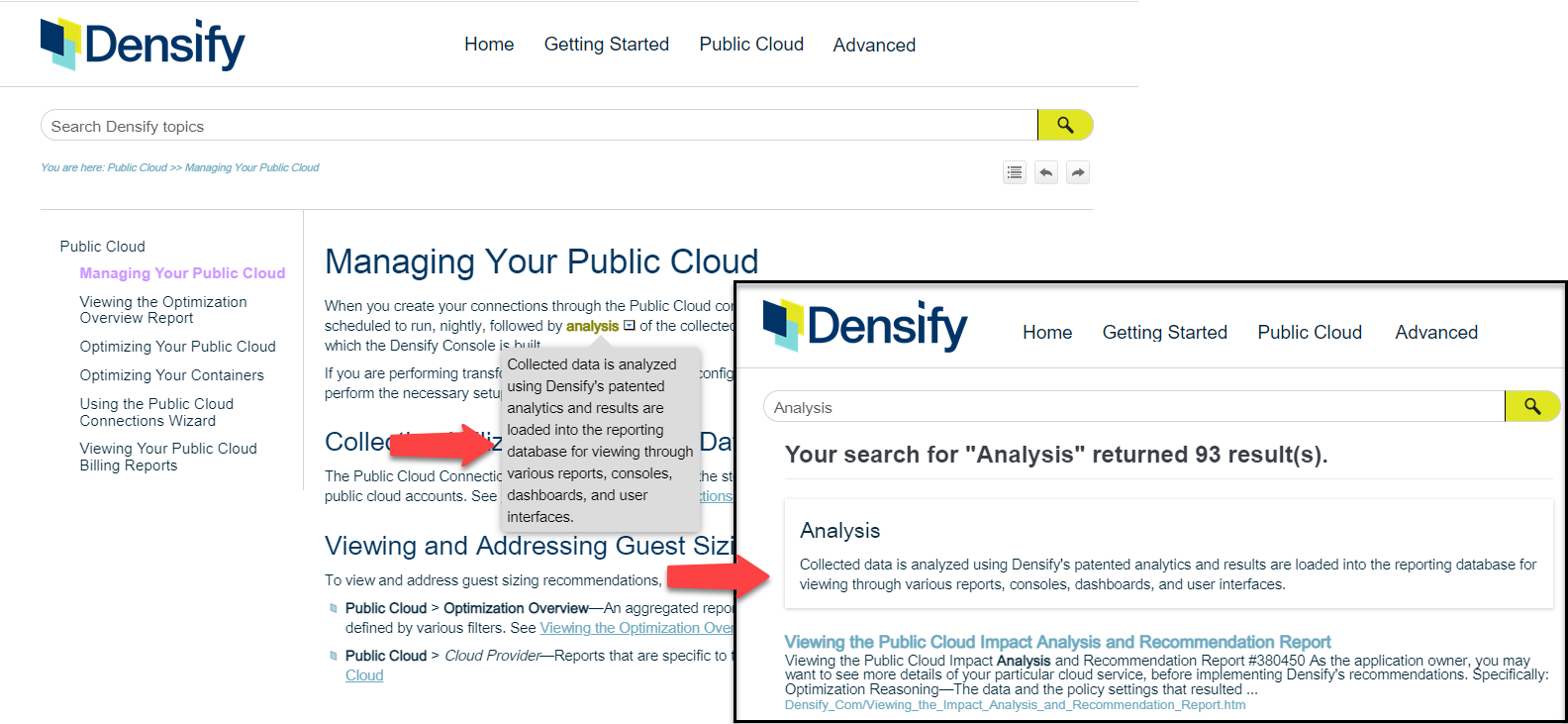 - On introduction pages, some Densify terms are linked to their descriptions and when you hover over the word, the description pops up.